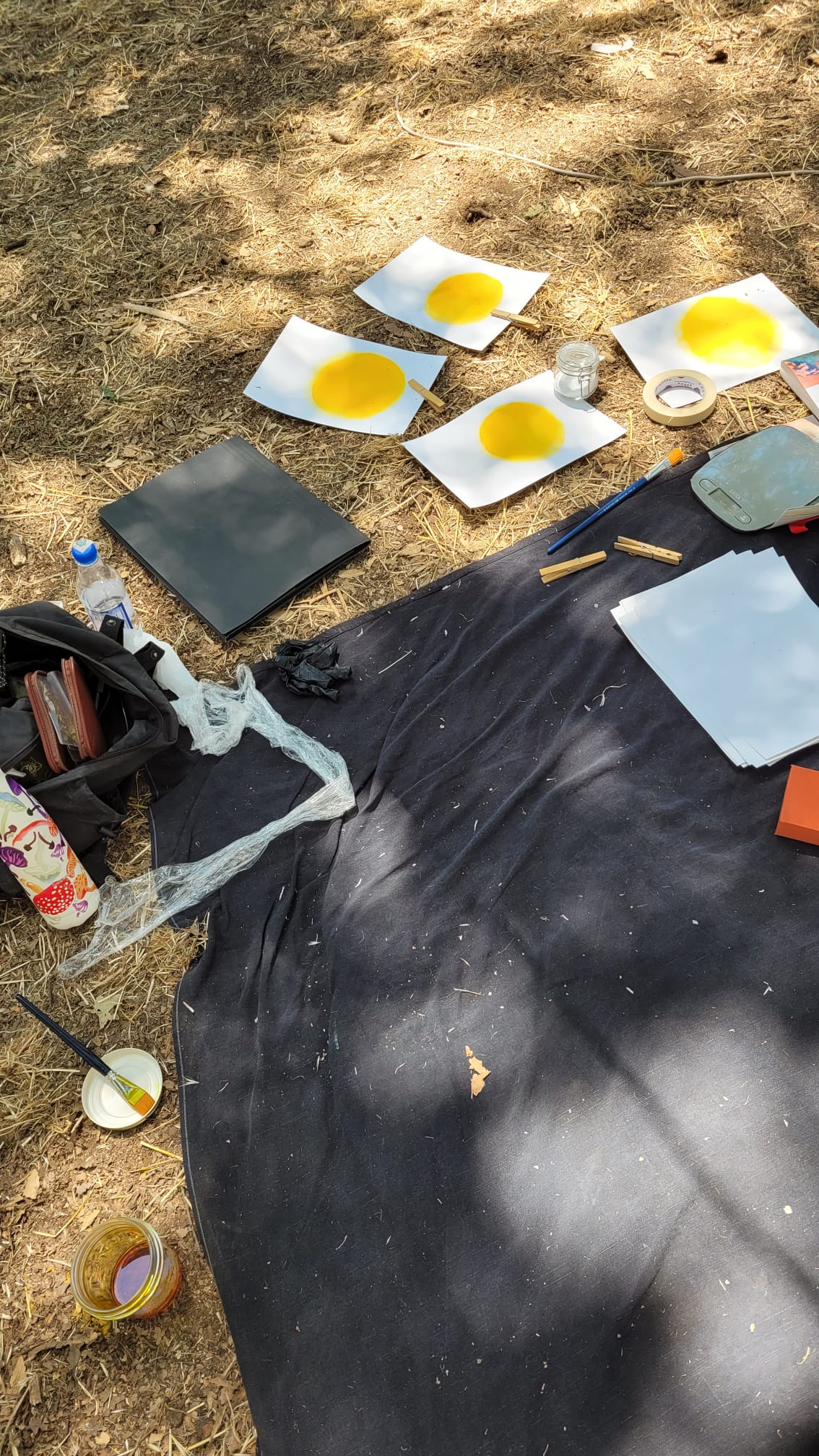 Since I had a vivid image of a playful and sunny bright place, I decided to portray the people who join this magical gathering. Additionally, I wanted to create some prints using a off-camera photography process, such as anthotype, which is a print process created using photosensitive material from plants under the influence of light (e.g., UV light, sunlight). On this occasion, I used the power of turmeric and its yellowish/orangish pigments as a symbol of the brightness of the environment and the souls they experience such celebration.